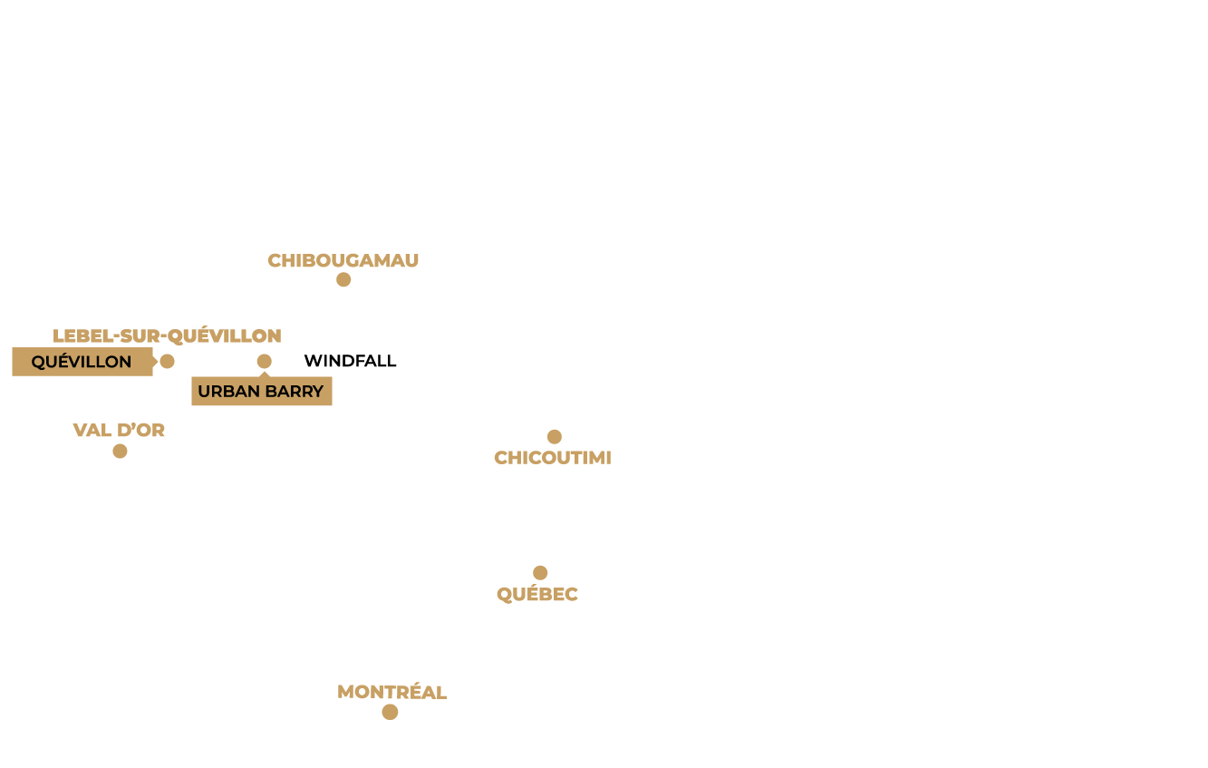 Since 2016, a total of 105,925 meters have been completed on the Urban Barry property. Drilling has led to the discovery of several gold showings, including Golden Bear, Fox, Fox West and Black Dog.