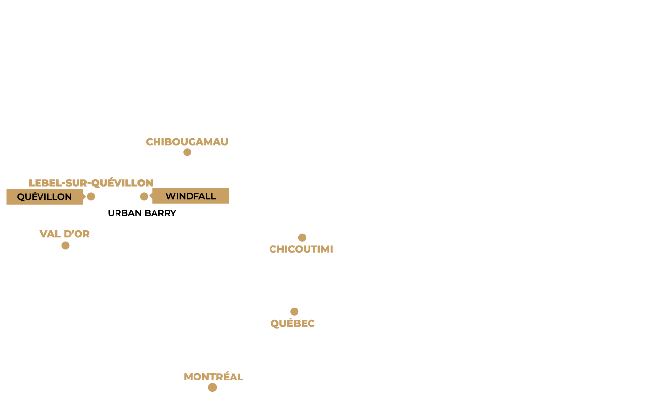 Since 2016, a total of 105,925 meters have been completed on the Urban Barry property. Drilling has led to the discovery of several gold showings, including Golden Bear, Fox, Fox West and Black Dog.